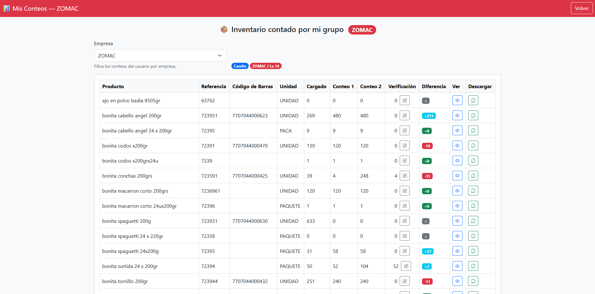 Solución de conteo de inventario que permite gestionar múltiples inventarios, realizar uno o dos conteos según necesidad y llevar un control en tiempo real de productos contados, faltantes y totales. Facilita la búsqueda por código, nombre o referencia, optimizando el proceso y reduciendo errores humanos.